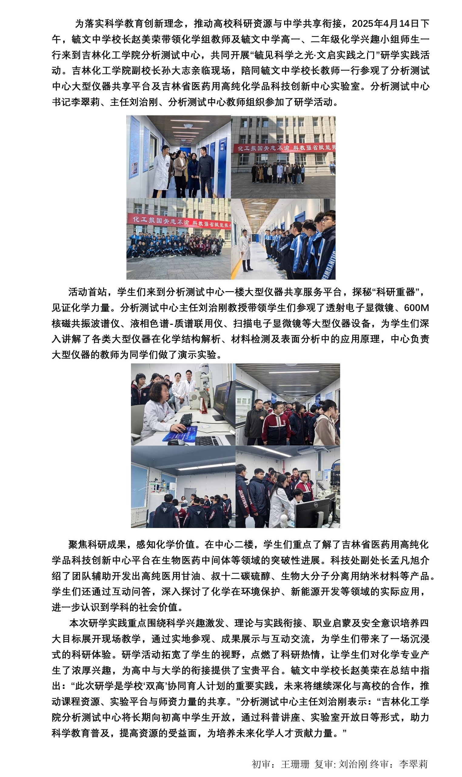 毓见科学之光,文启实践之门—毓文中学师生到吉林化工学院分析测试中心开展研学实践