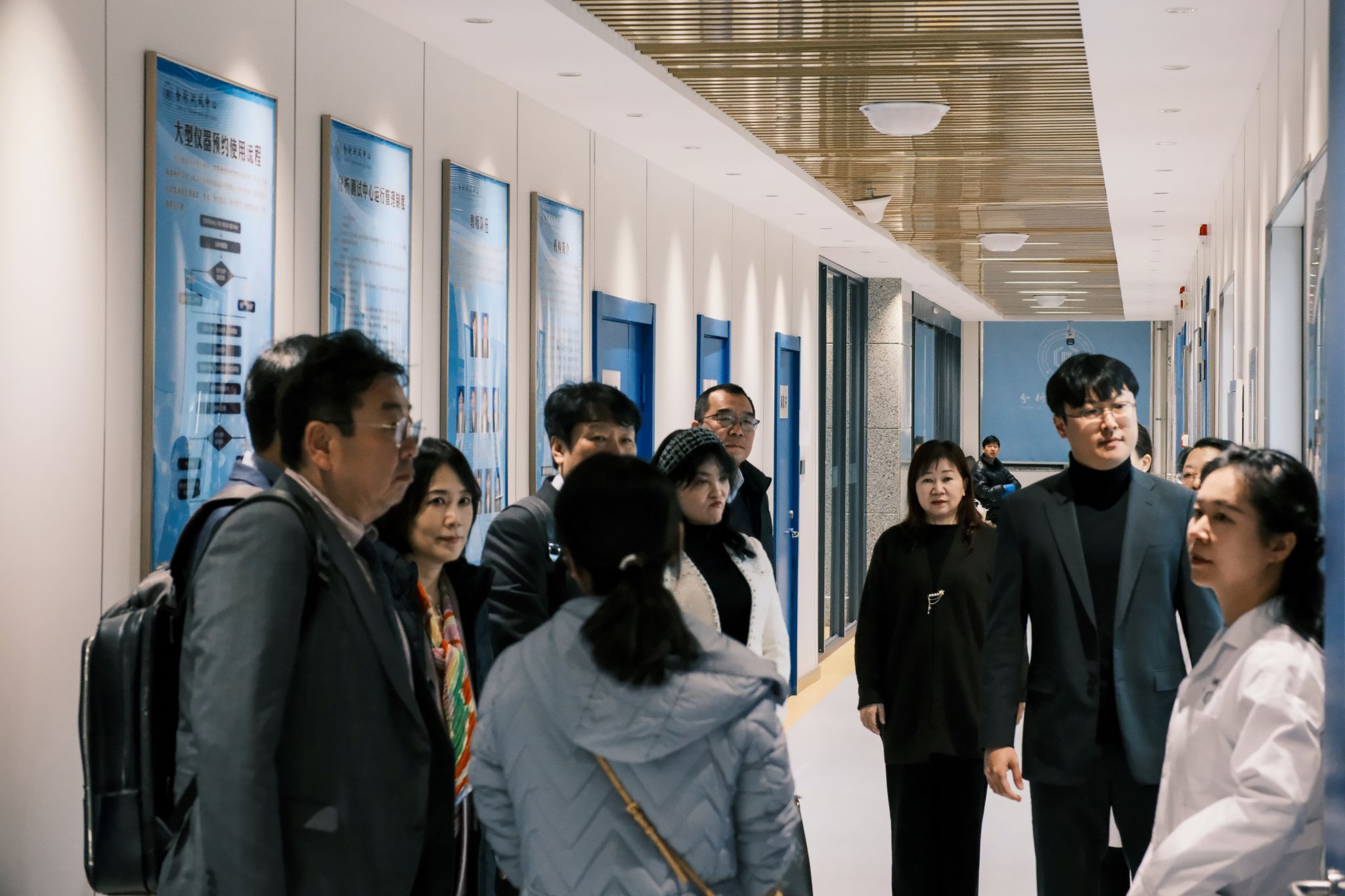 在分析测试中心负责人的陪同与讲解下,庆南大学代表团依次参观了中心的材料分析、成分分析、环境检测等多个专业实验室。中心工作人员向来宾重点介绍了如扫描电子显微镜(SEM)、X射线衍射仪(XRD)、气相色谱-质谱联用仪(GC-MS)、核磁共振波谱仪(NMR)等一批高、精、尖大型仪器设备的性能特点、应用领域以及日常运行管理模式。代表团成员对中心完善的硬件设施、规范化的操作流程以及高水平的专业技术队伍表示了高度赞赏。