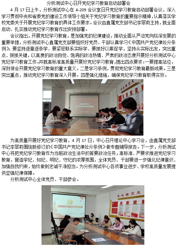 分析测试中心召开党纪学习教育启动部署会